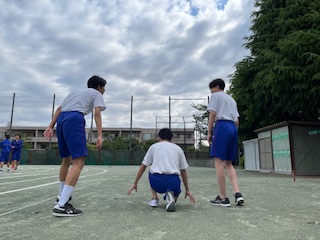 朝早くから多くの生徒が集まり、バトンパス、大縄の練習をしました。