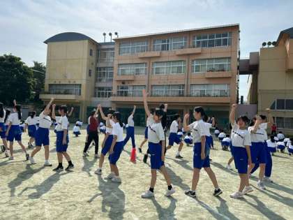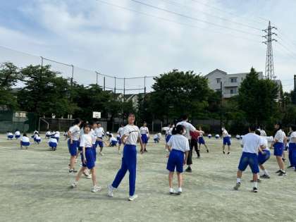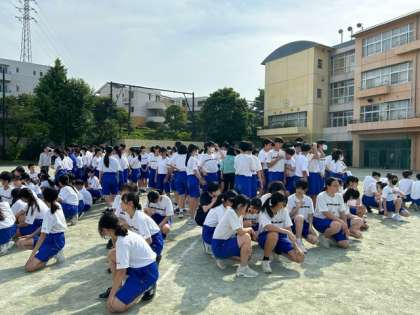 3学年そろっての校庭ダンス練習、ダンス部の指示に従い、全体の流れを確認しました。今週末はしっかり自主練ができるかな、本番はみんなの素敵なパフォーマンスを楽しみにしています!