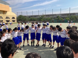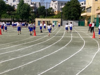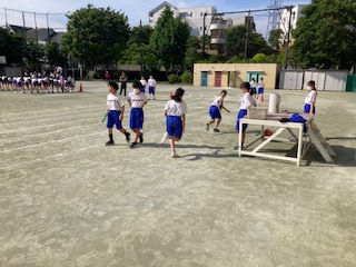 3年生体育委員の、ラジオ体操やバトンパスの手本に習い、練習しました!