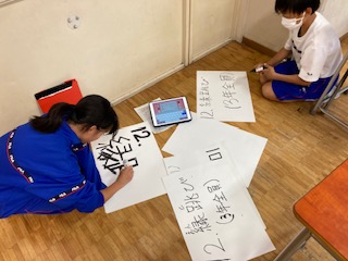 召集・誘導係を務める学級委員たちの様子です。プラカードの表示を今年度用に書きかえています。あと1週間、裏方の仕事も全力!細部にこだわっていきます^_^
