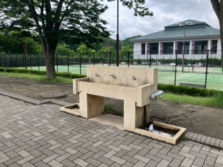まずは、テニス部が2,3日目に使う予定の、「十六沼公園テニスコート」に来ました。