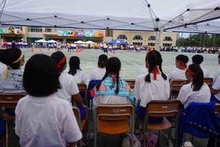 愛のラケットリレー(応援席から)、全員リレー、空手の様子です。