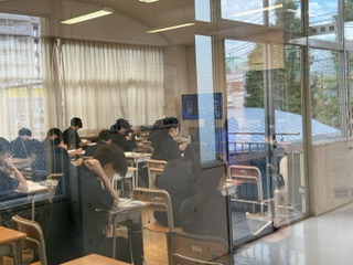 多くの生徒が元気に登校し、集中して授業を受けていました。(とても集中していたので、窓からこっそり…。)