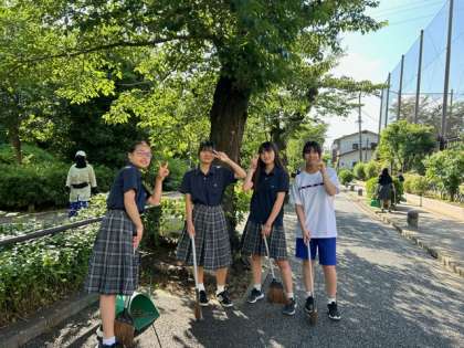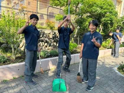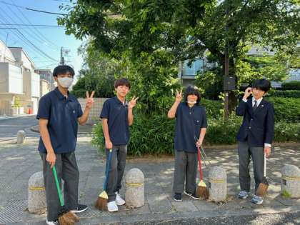 おはようございます。爽やかな朝、清掃ボランティアには、今日もたくさんの人が集まりました。呑川緑道の少し奥のところにたくさん生徒が集まっていて、「何かの種がたくさん落ちています」と教えてくれました。見上げると、黄色い小粒のビワの実がたくさんなっていました。立派な琵琶の木がヒガシの生徒を見守ってくれているような気がしました。今日も一日、頑張りましょう!
