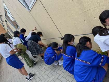 地域の方にアドバイスをもらいながら、本校の保護者の方に譲っていただいたひまわりの種を植えました(^^)