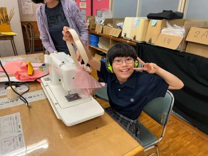 今日はミシンを使った作業にチャレンジしました。しっかり縫い付けることができました。完成が楽しみですね。