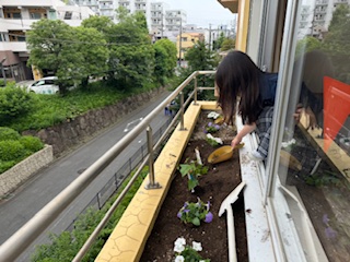 先日クラスのいきもの係が教室の花壇にお花を植えてくれました!