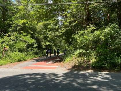 気温はだいぶ上がってきていますが、木陰になると涼しくて、鳥の鳴き声がとても素敵なバックグランド、歩いているのも気持ちがいいです。最初のチェックポイントまでもう少しです。
