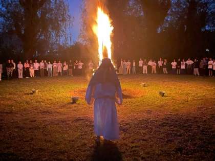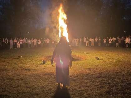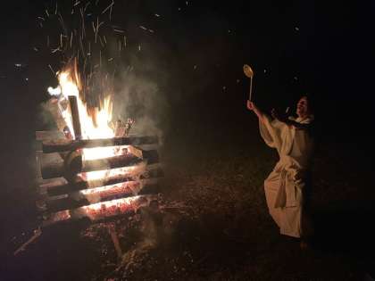 キャンプファイヤー! 火の神が炎に祈りを捧げています。