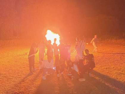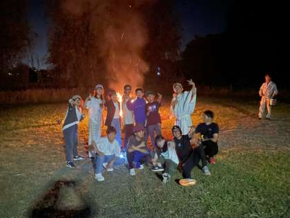最後は火の神と担当の先生と一緒にハイ!ポーズ。