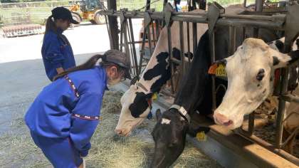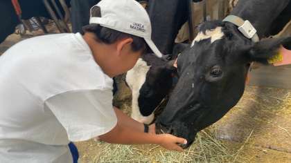 だんだん牛にも慣れて時間を忘れて餌をあげています。