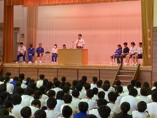 一学期最後の生徒会朝礼でした。
