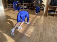 音楽の授業では、各クラス、課題曲の練習に励んでいます!体操をして歌いやすい身体作りもしています^_^