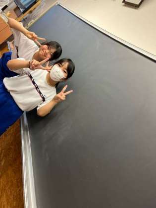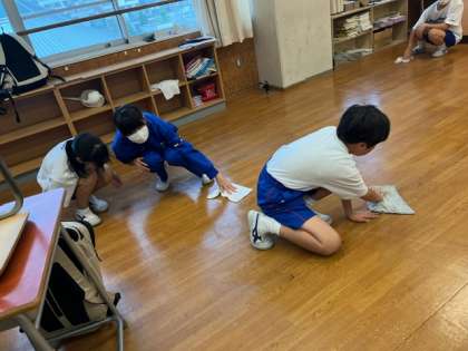 じゃんけんで勝った班に濡れ雑巾で床をごしごししてもらいました!