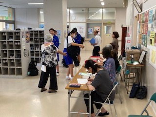 地域の方が受付してくれています。 申し込む生徒の皆さんは、忘れずに!