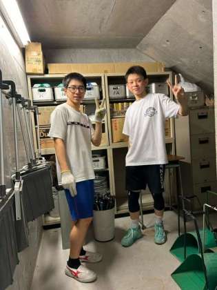 たくさんの掃除道具と、使わなくなった謎の物品もある整美倉庫、本日は委員長と副委員長で大掃除をしました。主事さんにも相談しながら、使えるものとそうでないものを区別していったら、倉庫が本当にスッキリしました。2時間を超えた大掃除、本当におつかれさまでした。おかげで2学期からの整美委員会の活動が充実していきそうです。構内美化、みんなの力で頑張りましょう!