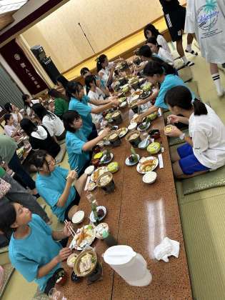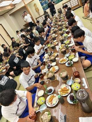 練習を終えて、宿舎で夕食。 美味しいご飯を食べて2日目も頑張りましょう! 平井