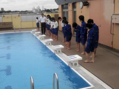 6月5日(火)昼休み、プール開きを行いました。プールでの事故防止を祈念して、水泳部を中心にプール開きを実施しました。