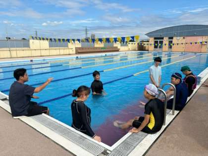 午後はお楽しみのプールです。 絶好のプール日和になりました。 井上
