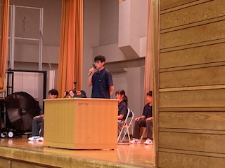 立会演説会で立派にスピーチする候補者と応援者。それを温かくも真剣に見守る聴衆。