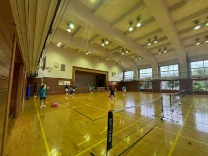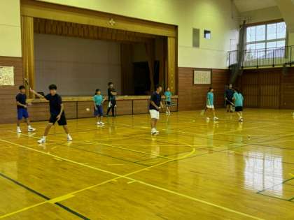区大会団体戦が雨天のため明日に延期になり、本日は朝から体育館で調整練習をしています。