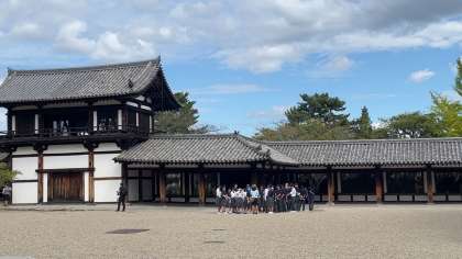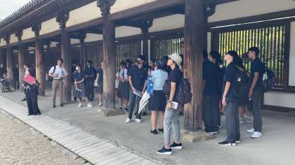 法隆寺を見学しています。