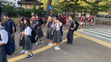 鹿とたわむれてから、興福寺国宝館に向かっています。
