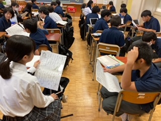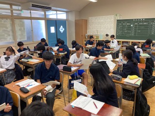 ペアになり、古文→現代語訳と読む役割を分担し、音読しました^_^