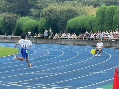 1年生男子の100mです。 2組とも組の中で一位でゴールしました。