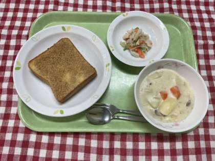 セサミトースト ツナサラダ クリームシチュー 牛乳