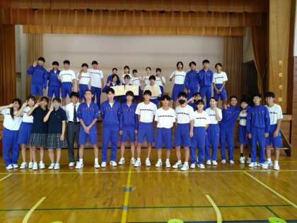 本日の全校朝礼では、表彰式と区陸の報告会を行いました。