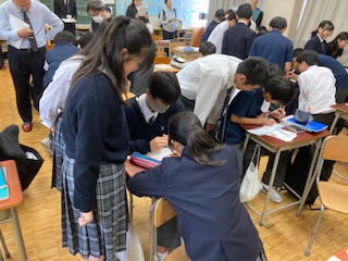 テーマは共通していましたが、5クラスそれぞれで異なる指導法を用いた授業が展開されました。他校の先生の授業を受けたクラスもありました。