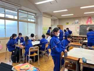1時間目には修学旅行の記録をまとめた模造紙を制作していました。