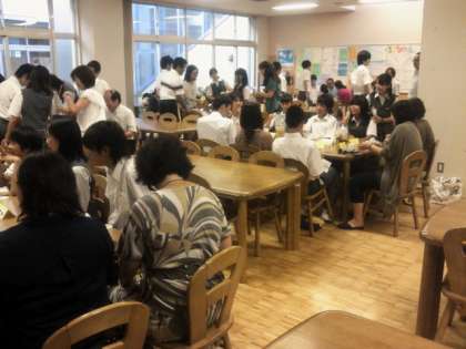 7月10日(火)、食堂を会場にPTA、生徒交流会が開かれました。テーマは「マイブーム」。それぞれ、思い思いのテーマに目を輝かせて