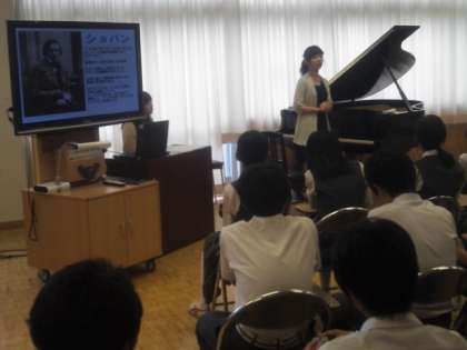 7月13・14日の2日間、文化芸術庁の事業として、ヨーロッパで音楽活動をされる明和先生と本校音楽家による特別授業が実施されました。ピアノ連弾を交え、様々な作曲家について学びました。