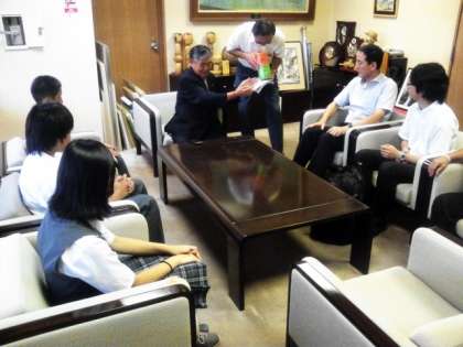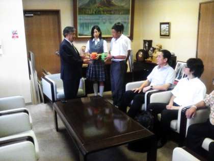 無事、四台のバスが到着し、各部の練習が始まりました。それと並行して、生徒会本部役員により、みしまの森学舎の募金活動による募金を猪苗代町長さんにお渡ししました。地元紙の記者さんもお見えになり、役員生徒がインタビューに答えていました。