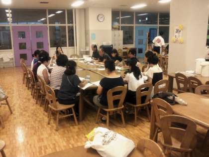 分科会、全体会の後、レクリエーション指導の実技研修会をもち、様々なレクリエーションについて、汗をながし、研修を深めました。