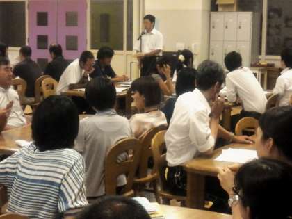 8月31日(金)、「みしまの森学舎」研修会が開かれました。知育、徳育、体育・食育部会の三部会に小中三校が分かれ、二学期の研究授業について検討しました。研究テーマ「かかわり合いを深め、表現力を高める」に向けて、活発な意見交換がなされました。