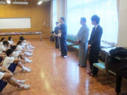 9月8日(土)、教科「日本語」公開授業を実施しました。三年生は着付けの講師をお招きし、浴衣の着付けについて学びました。全員がお借りした浴衣を着ることができました。帯の締め方一つで、雰囲気がガラッと変わってしまうのには驚かされました。