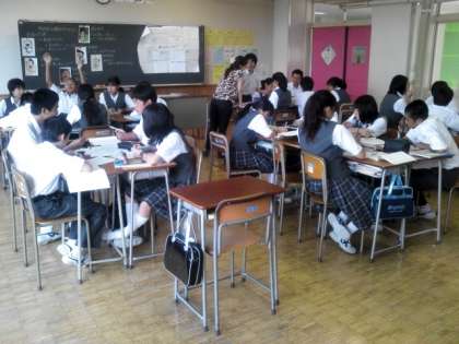 教科「日本語」公開授業、一年生は「町のルールづくり」、二年生は「金色の魚」を教材に哲学、表現に取り組みました。