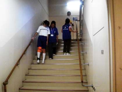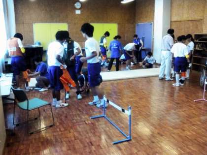 9月12日(水)、三年生は高齢者疑似体験授業を実施しました。福祉体験授業の一貫としての取り組みでした。身体に重りを着け、見えにくいメガネをかけるなど、普段通りには動かせない状態での歩行など、まずは知ることからの取り組みでした。