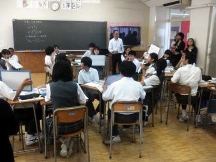 9月26日(水)、「みしまの森学舎」研究授業が、本校にて行われました。今年度の学舎の研究テーマである「かかわり合いを深め、表現力を高める」に、知育「数学」・徳育「道徳」・体育食育「保健体育」の授業をとおして迫る取り組みでした。写真は、数学と道徳の授業風景です。
