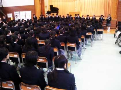 11月23日(火)、開・閉会式の練習をしました。始めに学芸発表会実行委員から、一人一人学発に向けての抱負を話してもらいました。