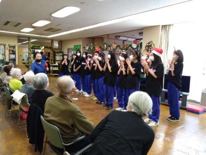 ダンス発表の後、クリスマスソングを一緒に歌ったり質問をしたりして、利用者様と心温まるひとときを過ごすことができました。