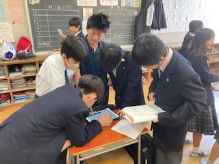 社会の小テスト前、様々な覚え方で最終確認していました。