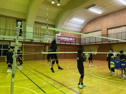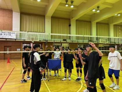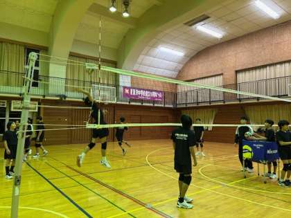 ダイナミックなスイングは、男子バレーも負けていません。みんなジャンプ力が、すごいです!コーチの話を真剣に聞いて、さらにレベルアップを目指しています。