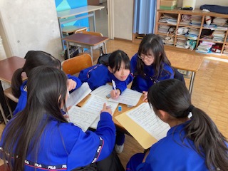 一年生の教室では、昼休みも理科の問題の教え合いが行われていました。