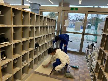 3日間の大掃除最終日、整美委員は下駄箱の清掃をしました。一つ一つの小さな棚を、雑巾と小箒を使って丁寧にお掃除、やり始めると没頭し、最後は床を雑巾掛けする人もいました。成果がわかりやすくてやる気の出る単純作業のお掃除は、忙しい1日を乗り越え疲れた心身まで、スッキリさせてくれますね!