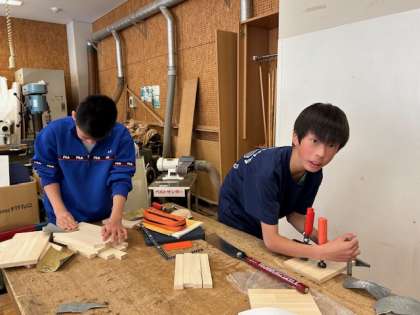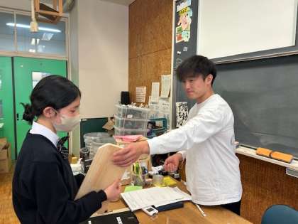 「今年の一年生のやすりがけは、素晴らしい。みんな頑張っています!」と技術科の先生からお褒めの言葉を聞いたので、作業を見に行きました。やすりの塩梅を先生に相談したり、一心不乱に木工に取り組んでいたり、はたまた少し休憩中の人もいたりと、個性豊かなB組、それぞれのペースで作品作りに向き合っていました。完成品は、3月の学発で展示されます。楽しみです!