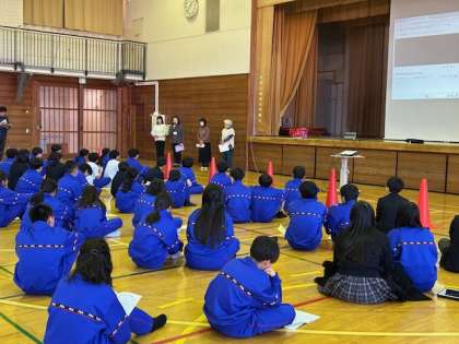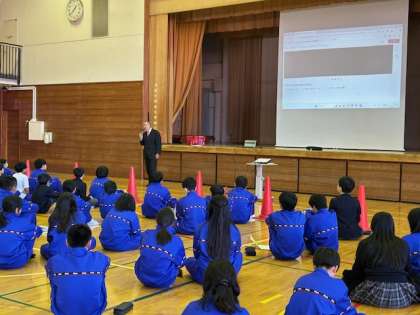 スキー・スノーボード教室の最終説明会が体育館で行われました。引率していただく東深沢・等々力コミュニティの方々のご挨拶や校長先生のお話を、参加者みんな真剣に聞いていました。今年のスキー場は積雪にも恵まれているようです。全力で楽しめるよう、当日まで体調をしっかりと整えておきましょう。